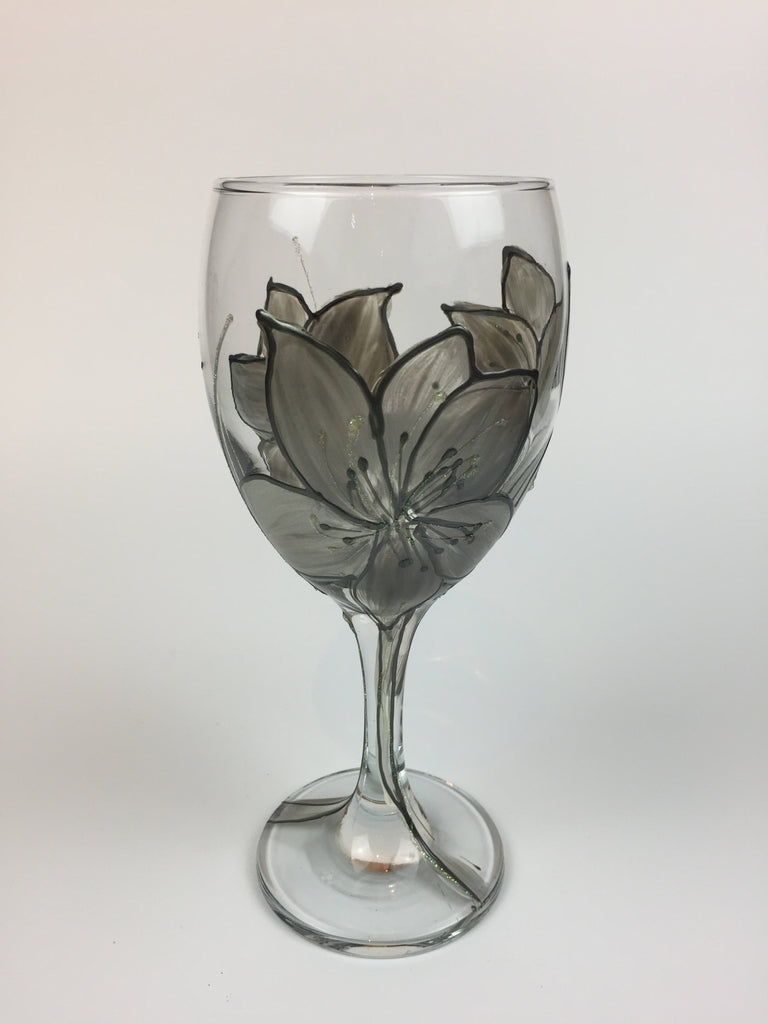 Hand painted glass, silver and pewter lily, embossed outline, finished with a shimmer, available in all sizes