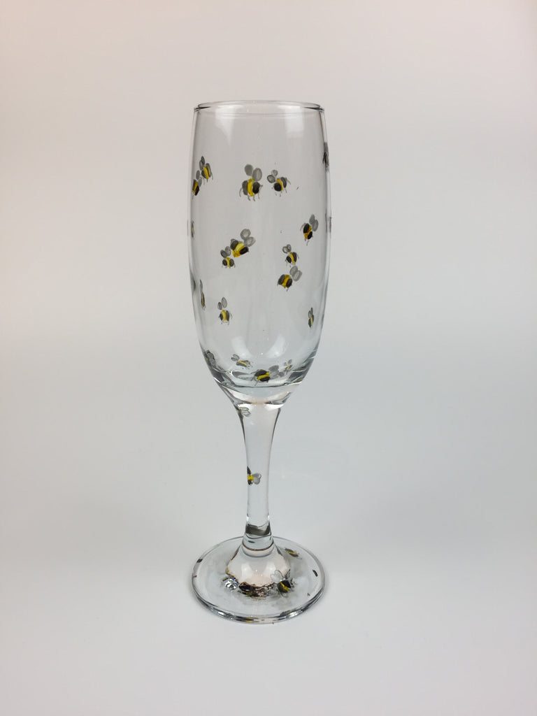 hand painted glasses, adorned with bees, available in all sizes, red wine, champagne, brandy, hi ball, tumbler or gin cocktail