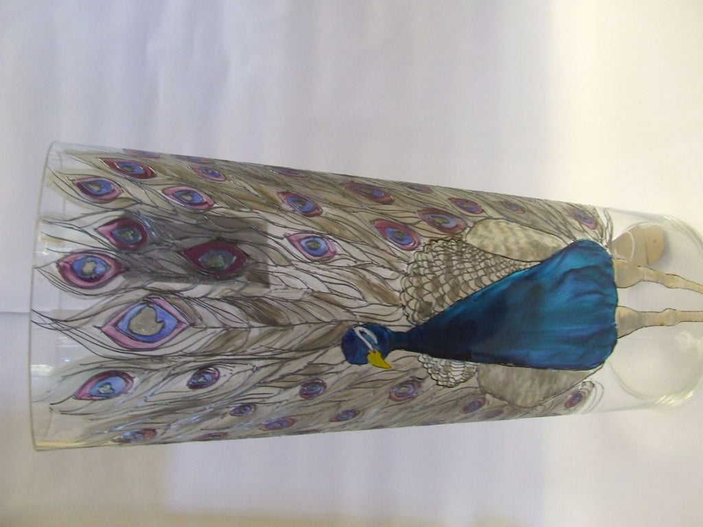 55cm x 25cm, stunning peacock hand painted on a floor vase
