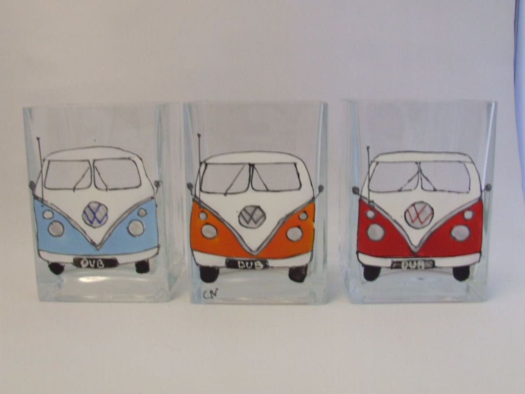 larger flat tank style vase hand painted vw camper van,25cm tall