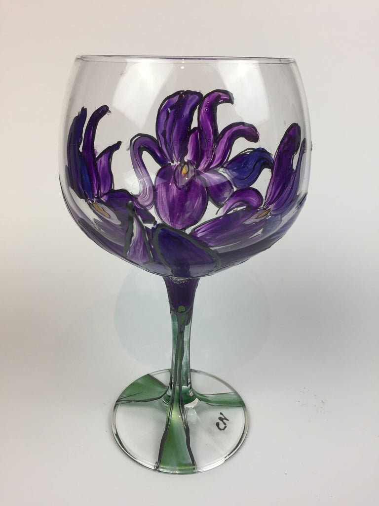 fabulous 26oz quarx gin cocktail glass, hand painted with Irises