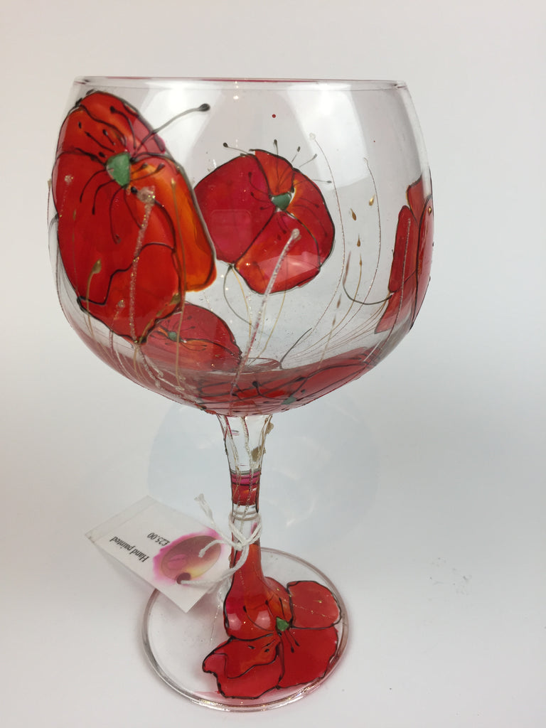 fabulous 26oz quarx gin cocktail glass, hand painted with poppies